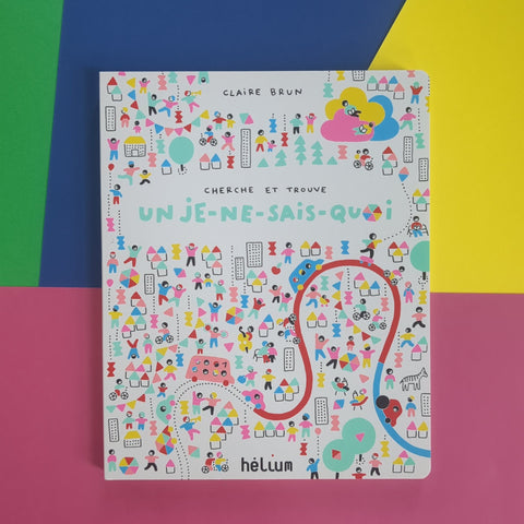 En couleurs directes, fluo ou pastel, et avec sa multitude de formes graphiques, Claire Brun nous fait jouer à retrouver un « je-ne-sais-quoi », dissimulé dans des images fourmillantes de détails miniatures, à l’aide d’un drôle de petit bonhomme très curieux et franchement décidé ! Le long des chemins qui ondoient dans les pages de ce livre-jeu élégant et drôle, le bonhomme va croiser d’autres bonhommes, des paysages où se bousculent des poussettes, des hirondelles, des bouées canards, des petites voitures et des animaux minuscules, semblables à tout un tas de petits jouets à retrouver… à nous en faire perdre la tête !