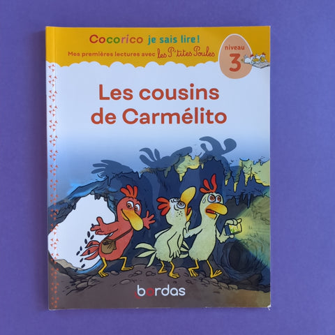 Mes première lectures – Les cousins de Carmélito - niveau 3 a été spécialement conçu pour accompagner la méthode de lecture syllabique Cocorico, je sais lire ! avec les P'tites Poules et permettre à l'enfant dès 5 ans de s'initier aux joies de la lecture avec les P'tites Poules. Les cousins de Carmélito - niveau 3 est accessible pour l'enfant après certains apprentissages du CP, dès 5 ans. Cette histoire courte est rédigée par une conseillère pédagogique (textes écrits en gros, mots entièrement décodables dès les premières pages de la méthode, mise en évidence des lettres muettes) et joliment illustrée dans l'esprit des P'tites Poules. En Bretagne, les cousins de Carmélito sont impatients de le recevoir. Aventures et frissons attendent le petit poulet rose, mais il ne le sait pas encore ! Les + de cette petite lecture: Une histoire courte, facile à comprendre, pleine d'espièglerie. Un solide contenu pédagogique complémentaire à l'histoire : présentation des personnages, illustrations des mots non décodables, un jeu autour de l'histoire pour terminer l'ouvrage...