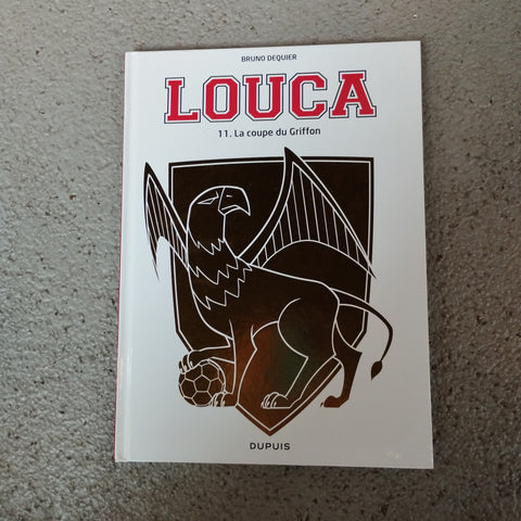 Anto et Antin sont super excités : les produits dérivés « Louca » qu'ils ont commandés viennent d'arriver et ils sont splendides ! Particulièrement la banderole géante « Allez Louca ! » qu'ils comptent bien déployer dans les tribunes du stade à l'occasion du quart de finale de la Coupe du Griffon. Mais Louca (et Nathan...) est encore bien loin d'arriver en Europe, perdu sur un bateau à la dérive sur un océan lointain...