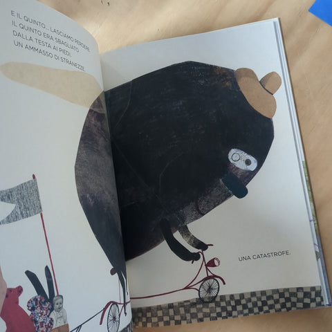 I cinque malfatti sono cinque tipi strani: uno è tutto bucato; uno è piegato in due, come una lettera da spedire; un altro è tutto molle, sempre mezzo addormentato. Un altro ancora è capovolto, tanto che per guardarlo in faccia ti devi mettere a gambe per aria. E lasciamo perdere il quinto, sbagliato dalla testa ai piedi: una catastrofe. Abitano insieme, questi begli originali, in una casa: ovviamente, sbilenca. E che fanno? Niente, ma proprio niente di niente... Finché un giorno in mezzo a loro, come una punizione di divina, piomba, lui: il Perfetto.