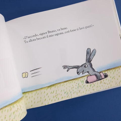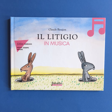 Babalibri in Musica propone classici del catalogo Babalibri in edizione speciale con una fiaba musicale, letta da attori professionisti e arricchita dall’esecuzione dal vivo di brani scelti di musica classica. La collana, diretta da Maria Cannata, offre un’esperienza di ascolto totalmente nuova, in cui due modalità espressive diverse e complementari si alternano, dialogano e costruiscono una fitta rete di rimandi poetici, musicali e visivi. Per ogni titolo, la fiaba musicale può essere ascoltata tramite un QR code tattile presente nel libro. Briosa, vivace, incalzante, la musica di Haydn scelta per questa fiaba musicale è tratta da due celebri sonate, la Sonata per pianoforte in Do Maggiore Hob.XVI/1 e la Sonata per pianoforte in Do Maggiore Hob. XVI/10. Sulle note leggere del Moderato entrano in scena il signor Bruno e il signor Bigio, due conigli vicini di tana che non ci mettono molto a iniziare a battibeccare. I buffi botta e risposta fra i due sono accompagnati dalle note delle sonate, finché una volpe affamata fa capolino… L’esecuzione di Andrea Dussò e la voce di Alessia Canducci sembrano custodire la stessa allegria della musica di Haydn, la stessa voglia di giocare con le parole di Boujon.