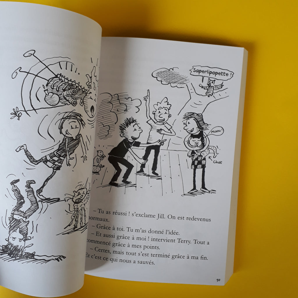 Pour la visiter, embarque à bord d'un bus volant tiré par des pingouins. Tu vas traverser une chambre spéciale soirée pyjama, un office du tourisme et même un Musée du Slip ! Andy et Terry aimeraient profiter de ces nouvelles pièces mais ils ont promis à M. Gros Nez, leur éditeur, de lui remettre un manuscrit. Et cette fois, c'est Terry qui raconte l'histoire. Seulement, il panique et ne trouve pas de fin...
