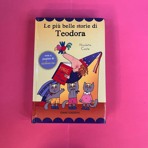 7 storie della strega Teodora raccolte in un unico volume imbottito, con 4 pagine di adesivi. Le avventure della strega creata da Nicoletta Costa, che vive con un pappagallo e tanti gatti e ha un draghetto verde come amico speciale... Età di lettura: da 5 anni. Le storie contenute in questa raccolta: Teodora e Draghetto; Teodora e la zia Petronilla; Teodora, Draghetto e la cavalla rapita; Teodora e gli ospiti volanti; Teodora e il pappagallo Mauro; Teodora e il pappagallo innamorato; Teodora vuole ballare.