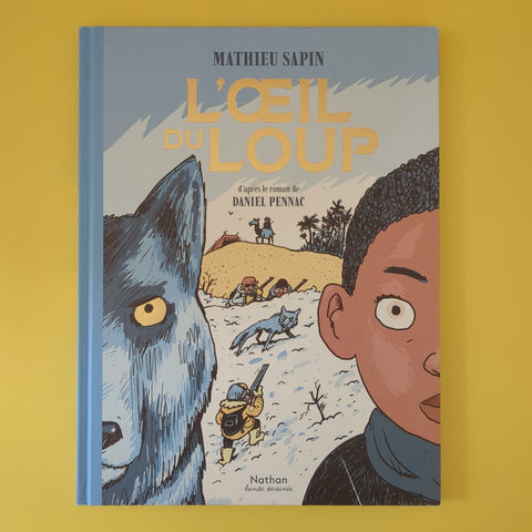 La grille d'un enclos, dans un zoo : d'un côté, un loup borgne, de l'autre un petit garçon à l'œil fermé. Dans l'œil du loup défilent le Grand Nord, l'aventure, la fuite devant les hommes chasseurs... Dans l'œil du petit garçon, l'Afrique, l'incendie, le guépard, l'antilope, le dromadaire... L'adaptation en BD, très réussie du roman incroyable de Daniel Pennac par Matthieu Sapin.
