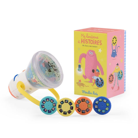 Découvrez la lanterne 3-en-1 à la fois projecteur d'histoires, d'ombres et veilleuse.