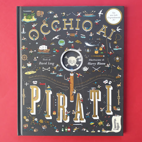 Ehilà, pendagli da forca! Impugnate la lente d'ingrandimento e salpate per i sette mari, in un piratesco cerca-e-trova, a caccia del tesoro e di altre 200 cose da scovare: botti di rum, fucili, spezie, avorio, dobloni d'oro... Sfogliando le pagine di questo libro, il giovane lettore scoprirà dieci veri pirati, imparerà com'era la vita in alto mare, sia in coperta che sottocoperta, ed esplorerà fin nei minimi dettagli alcuni momenti chiave della storia della pirateria. Conoscerà Barbanera con le sue micce accese in battaglia, James Ford che di giorno faceva il giudice in tribunale e di notte il pirata fluviale, e anche Anne Bonny e Mary Read, la dimostrazione vivente che le donne pirata potevano essere risolute quanto gli uomini. Un'avventura cerca e trova per tuffarsi nella storia dei bucanieri.