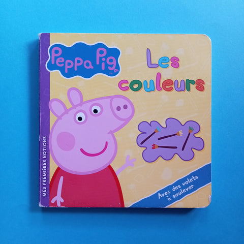 Un très joli tout carton avec des volets à soulever pour découvrir les couleurs avec Peppa.