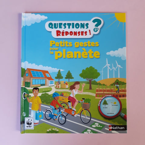 Pourquoi les orangs-outans sont-ils en danger ? Pourquoi la banquise fond ? Où va l'eau sale ? Que peut-on faire pour économiser l'électricité ? Peut-on remplacer l'essence ? C'est quoi les produits bio ? Peut-on cueillir toutes les plantes et fleurs dans la nature ? Quels sont les animaux menacés ? À travers plusieurs sujets (Pourquoi protéger la planète, Halte au gâchis...), l'enfant découvre les petits gestes pour la planète.
