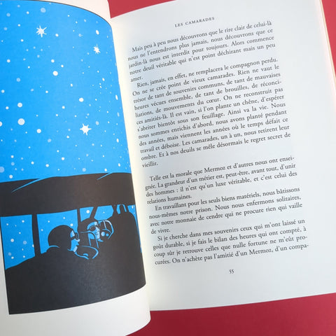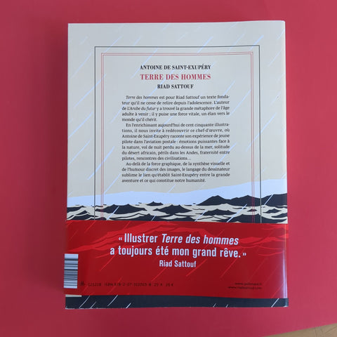 Terre des hommes est pour Riad Sattouf un texte fondateur qu'il ne cesse de relire depuis l'adolescence. L'auteur de L'Arabe du futur y a trouvé la grande métaphore de l'âge adulte à venir ; il y puise une force vitale, un élan vers le monde qu'il chérit. En l'enrichissant aujourd'hui de cent cinquante illustrations, il nous invite à redécouvrir ce chef-d'oeuvre, où Antoine de Saint-Exupéry raconte son expérience de jeune pilote dans l'aviation postale : émotions puissantes face à la nature, vol de nuit perdu au-dessus de la mer, solitude du désert africain, périls dans les Andes, fraternité entre pilotes, rencontres des civilisations... Au-delà de la force graphique, de la synthèse visuelle et de l'humour discret des images, le langage du dessinateur sublime le lien qu'établit Saint-Exupéry entre la grande aventure et ce qui constitue notre humanité.