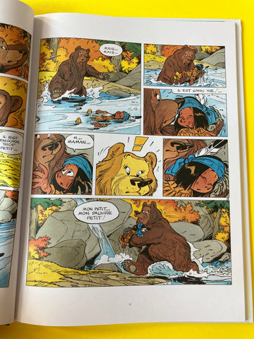N'écoutant que son coeur, Yakari tente de secourir un ourson en mauvaise posture sur un branche. Ils tombent tous deux dans les flots d'une rivière torrentueuse. Yakari se réveille, amnésique, dans les bras d'une ourse, la mère de l'ourson. Affreusement coupable de ne pas avoir été assez vigilante, la grande ourse prend le pauvre Yakari pour son fils Rayon-de-Miel. Elle impute ce changement d'apparence à l'esprit des ours, le Gros Noir des Forêts...