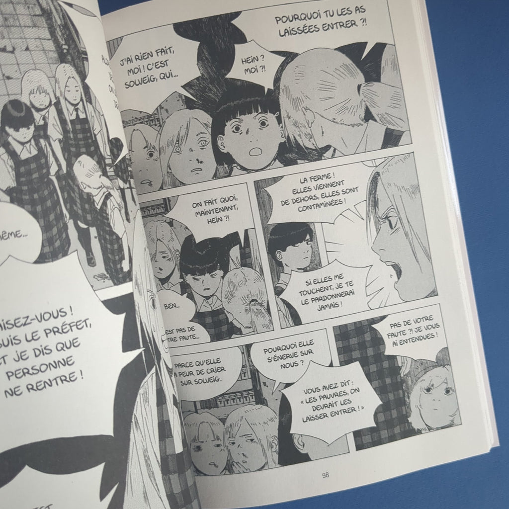 Dans le paysage plat et sans vie d'un désert de pierres se trouve un internat disciplinaire. Depuis sept ans, Margot y cultive sa solitude. Transparente et stoïque, elle observe Dan et son groupe faire la loi dans les couloirs, Solweig se bagarrer dans l'ombre des bâtiments, et Olga, la fille du directeur, faire la sieste au soleil. Elles sont en terminale et, alors que la liberté se profile à l'horizon de leurs dix-sept ans, se produit le PHÉNOMÈNE. Lorsque l'alarme retentit ce jour-là, il ne s'agit pas d'un entraînement. Il ne reste que quelques minutes avant que de petites créatures mortelles tombent du ciel. Toute personne n'ayant pas évacué les lieux y sera enfermée avec ces êtres mystérieux, abandonnée à son sort. Les élèves se bousculent, se marchent dessus, se ruent vers les grilles. Mais, perdue dans les couloirs labyrinthiques d'une section abandonnée des bâtiments, Margot finit par renoncer à courir et se rend à l'é il est trop tard pour fuir. Yon est la première histoire signée par Camille Broutin en tant qu’autrice complète. Un manga très inspiré qui entre dans la nouvelle collection Young Adult de Dargaud, « Combo ».