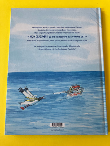 Le voyage rocambolesque d'Odile la mouette, à la poursuite de son déjeuner de l’océan jusqu’à l’assiette ! Odile la mouette est vraiment affamée ! Et ce maquereau, là, juste sous ses yeux semble absolument parfait pour son déjeuner. Odile s'en frotte les plumes d'avance ! Elle se concentre, déploie ses ailes et plonge, le bec grand ouvert… quand un pêcheur remonte son filet et se saisit de sa proie ! Le maquereau lui file sous le nez - ou plutôt sous le bec, mais peu importe, c’est mal connaître l’optimisme d’Odile : la prochaine fois sera la bonne ! Ou celle d’après… ou encore celle d’après. Ni les étals de poissonniers ni les portes fermées n’empêcheront Odile de récupérer son déjeuner. Cet album feel good nous emmène dans une course-poursuite pleine de péripéties, de l’océan jusqu’à l’assiette !