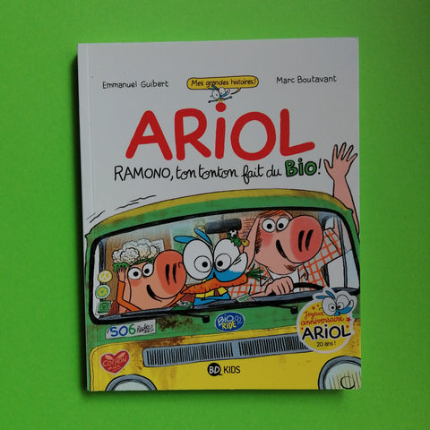 Lo zio di Ramono, Jean-Soue, è un droghiere-bistrot-edicolante nel villaggio di Saucy-le-Sonsec. Una volta al mese va in giro per la città a vendere i suoi buoni prodotti biologici. E questo mese prenderà Ramono e Ariol. Che festa! Il programma: andare da Madame Tirjus, poi da Madame Fourrastier, poi... Presto, però, tutto degenera! Innanzitutto, Ariol e Ramono scoprono, nascosti nel furgone di Jean-Soue, Marmouge e Péduret, i suoi due amici. Poi il piccolo drappello viene seguito... ma da chi?...Condizioni: Come nuovo, scopri di più