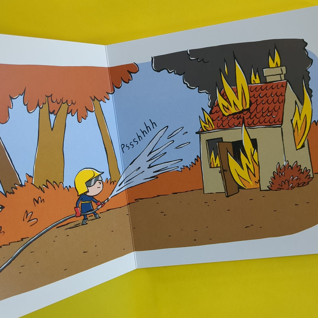 Per il piccolo pompiere oggi è una giornata movimentata: una casa sta andando a fuoco! A quanto pare, il suo proprietario voleva provare a fare i pop corn… Nemmeno il tempo di intervenire che il castoro corre a chiedere aiuto: la sua foresta sta bruciando! «Volevo solo fare una grigliata» spiega sconsolato. Ma il pompiere sa bene cosa fare per domare l’incendio e carica tutti sul camion per portarli nella loro nuova casa. Quando, a fine giornata, è ora di rientrare, il piccolo pompiere trova una splendida sorpresa… questa volta non è un incendio, ma una festa di compleanno con tutti i suoi amici più cari!