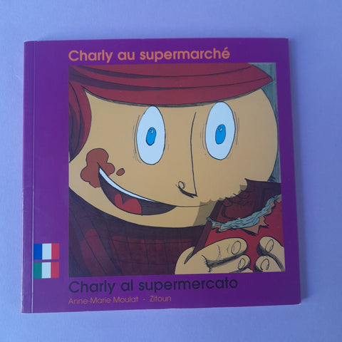 Lorsqu'il n'a pas d'école, Charly adore faire les courses avec Maman. Ce qu'il aime plus que tout, c'est mettre les courses dans le caddie et surtout sans demander l'avis de Maman, absorbée par sa propre liste. C'est à la caisse que tous les comptes se règlent. Histoire bilingue