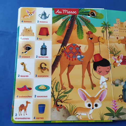 1 chien, 2 ânes, 3 sombreros, 4 maracas, 5 colibris… Amuse-toi à chercher, trouver et compter plus de 200 éléments cachés au Mexique, au Kenya, en Inde…
