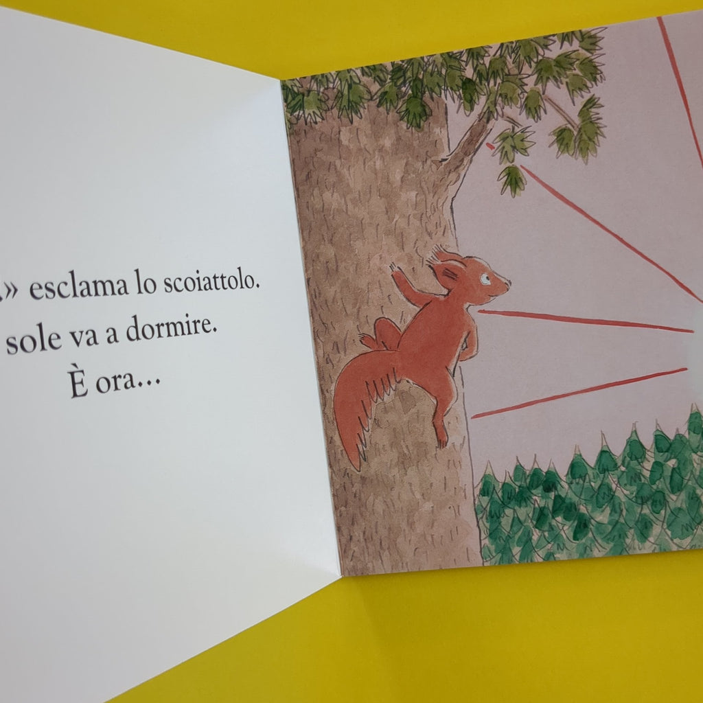 Il sole inizia a scendere nel cielo e tutti gli animali, dal bosco allo stagno, sembrano in attesa di qualcosa. «Mmm!» bramisce l’alce. «Ssssss!» sibila il serpente. «Sgrunt!» grugnisce il maiale… È proprio ora di… di cosa? Alla luce rosa del tramonto, tra versi buffi e piccole sorprese, una serie di animali accompagna dolcemente i bambini e le bambine al momento di andare a dormire.