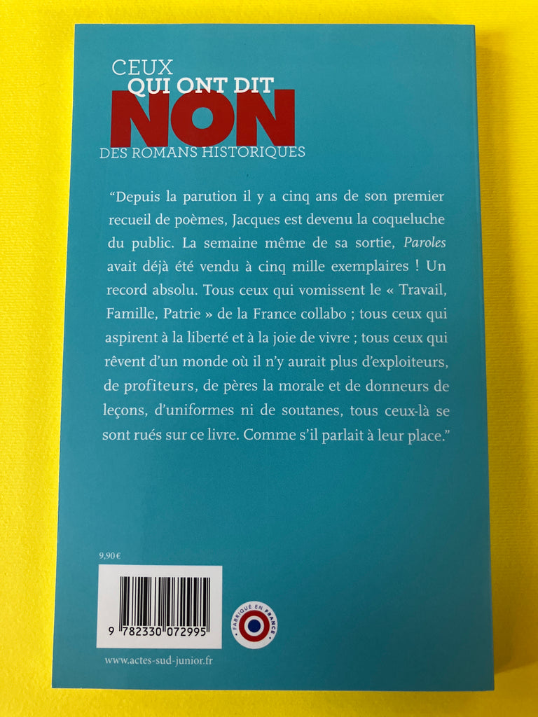 Un poète, écrivain, cinéaste qui refusa toute sa vie de se conformer aux règles. Qui n'a pas appris à l'école un poème de Jacques Prévert ? Si tous les enfants connaissent la Chanson des escargots qui vont à l'enterrement d'une feuille morte, celle du bonhomme de neige qui galope dans la nuit de l'hiver ou bien celle du cancre qui s'évade de la salle de classe en rêvant avec l'oiseau-lyre, qui connaît le vrai visage du poète ? Celui d'un homme qui fut toute sa vie un révolté, insoumis à toute forme de règles. Un pur anar, viscéralement antimilitariste, anticlérical et anticonformiste. Né en 1900, Prévert va traverser deux guerres en vomissant les uniformes et les soutanes, en choquant le bourgeois, et en prenant toujours le parti des pauvres et des exploités. Dans ce roman, où se succèdent les situations comme autant de petites saynètes cinématographiques, c'est toute la puissance révolutionnaire du verbe du poète qui surgit.