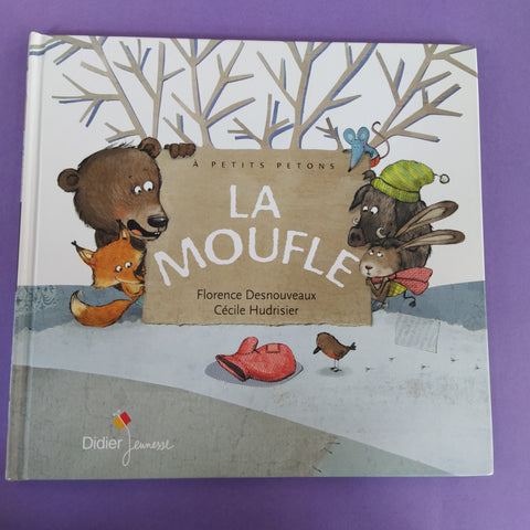 Par une journée de grand froid, Souris se promène et trouve une moufle en laine rouge sur la neige. Toute contente, elle se blottit à l’intérieur. Puis arrivent Lièvre, Renard, Sanglier et enfin Ours Potelé qui voudraient bien, eux aussi, profiter de l’aubaine !