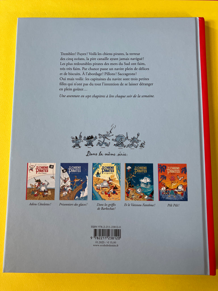 Tremblez ! Fuyez ! Voilà les chiens pirates, la terreur des cinq océans, la pire canaille ayant jamais navigué ! Les plus redoutables pirates des mers du Sud ont faim, très très faim. Par chance passe un navire plein de délices et de biscuits. À l’abordage ! Pillons ! Saccageons ! Oui, mais voilà : les capitaines du navire sont trois petites filles qui n’ont pas du tout l’intention de se laisser déranger en plein goûter... Une aventure en 7 chapitres à lire chaque soir de la semaine !