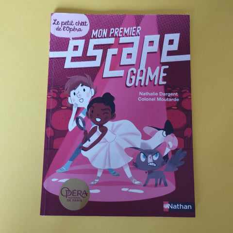 Mon premier escape game s'invite à l'Opéra ! Résumé : Quand Bintou, le petit rat, et son copain danseur disparaissent juste avant le début d'une représentation, le chaton Tutu décide de mener l'enquête. Furetant dans les sous-sols et les balcons de l'Opéra, Tutu et son acolyte, le chiot Strap, découvrent que les petits rats ont été enlevés par le Roi des Rats, le méchant du ballet Casse-Noisette. En déjouant les pièges des coulisses du Palais Garnier, aide Tutu et Strap à résoudre les énigmes pour délivrer les deux petits danseurs avant que le spectacle ne commence ! Un escape game avec des énigmes et indices autour de la lecture, du déchiffrage et des compétences qu'on acquiert au CP-CE1.