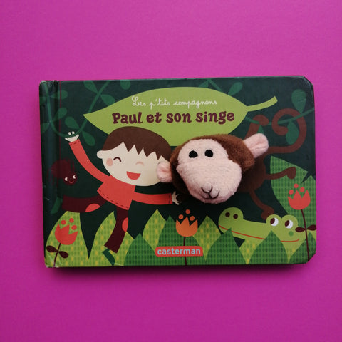 Collezione di album con copertina rigida decorati con ritagli in cui si svolge una marionetta da dito con l'immagine di un animale.