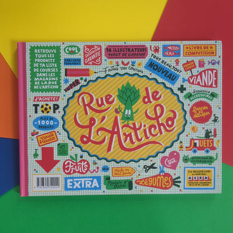 Seize des meilleurs illustrateurs du moment, français ou européens, se sont vu attribués une boutique avec comme consigne de faire leur autoportrait en... commerçant. Seize commerces et une liste de courses posée en bandeau sur la couverture avec des éléments à retrouver au fil des pages. Un imagier livre-jeu festif, alternatif, attractif, collectif et associatif (réalisé avec l'association L'Articho) ! Auteur(e)s : Yassine, Arnaud Boutin, Estocafich, Vincent Pianina, Nathalie Lété, Delphine Durand, Lili Scratchy, Postics, Vincent Mathy, Christian Aubrun, Espen Friberg, Benjamin Chaud, Florie Saint-Val, Anouk Ricard, Charles Dutertre, et Chamo.
