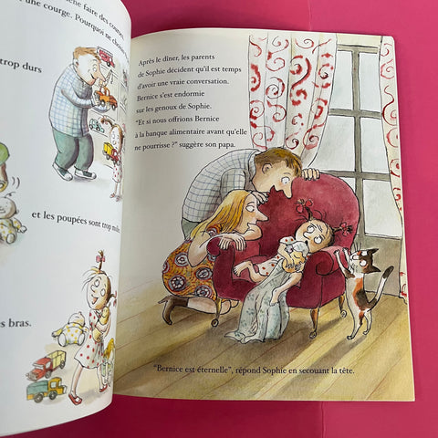 Sophie adore Bernice. Elle lui chuchote tous ses secrets, la berce à l'heure de la sieste. Ensemble, elles vont à la bibliothèque et font des galipettes. Bernice est beaucoup mieux qu'une poupéé, Bernice est une... courge ! Édition spéciale non commercialisée en librairie.