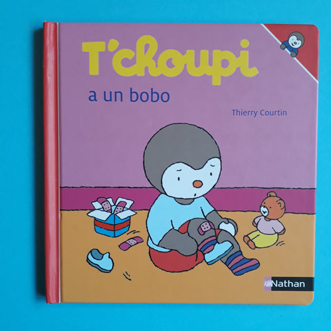 Ahi, T'choupi ha avuto una bua. Per fortuna la mamma gli mette una bella fasciatura e soprattutto gli dà il suo “bacio magico” che guarisce tutto.