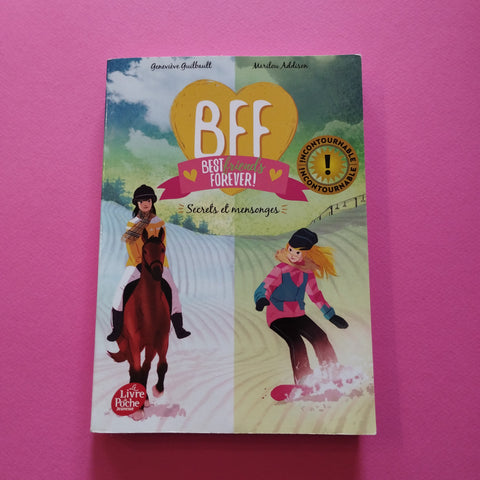 Encore une séparation pour les BFF… Mais il n’est pas question pour Charlotte de se morfondre. Le collège organise une sortie scolaire des plus amusantes en ce début d’hiver : deux jours loin de sa famille avec toute sa classe et plein d’activités sympas. Mais une fois sur place, Charlotte découvre un secret qu’elle aurait mille fois préféré ne pas savoir. À l’autre bout du pays, Émilie est prête à tout pour oublier ses histoires d’amour rocambolesques. Loin de sa famille et de sa BFF, elle se jette à pieds joints dans une aventure équestre qui lui en fera voir de toutes les couleurs. Charlotte et Émilie parviendront-elles à résoudre tous leurs problèmes malgré la distance qui les sépare ?
