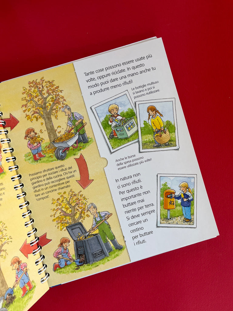 Dove vengono portati i rifiuti? Quanti tipi di rifiuti ci sono? Come evitare di produrne altri? Un libro tutto illustrato che aiuta a capire il mondo, offrendo risposte chiare ed esaurienti alle mille domande dei bambini. Osservando le immagini e scoprendo cosa si nasconde sotto i grandi flap, ogni pagina è una bella avventura!