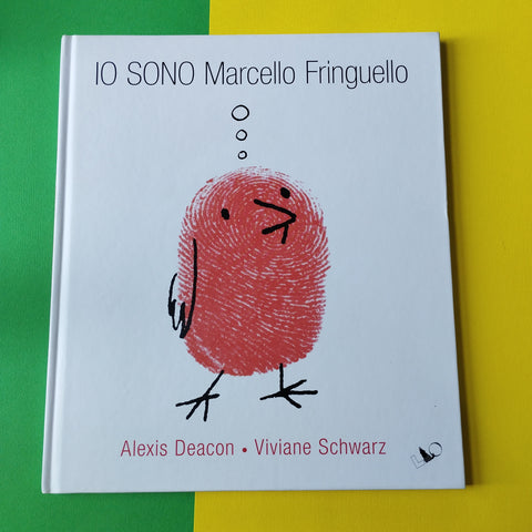 C’era una volta uno stormo di fringuelli, tanti fringuelli, tanti rumorosissimi fringuelli cinguettanti, così cinguettanti che nessuno poteva sentire i propri pensieri “Buon giorno Ortensia Fringuello!”, “Buon pomeriggio Enrico Fringuello!”, “Buona sera Anna Fringuello!”, “Buona notte Marcello Fringuello!” le giornate trascorrevano così, sempre uguali, tranne quando arrivava LA BESTIA e se ne mangiava qualcuno. Finché una notte, nel buio e nel silenzio, Marcello Fringuello all’improvviso sentì un pensiero: “Io penso Io sono Io sono Marcello Fringuello Io potrei fare qualcosa di grande!” come tuffarsi temerariamente a capofitto nelle fauci della BESTIA. Che lo inghiotte. Ma MAI sottovalutare la potenza del PENSIERO Marcello Fringuello è un piccolo coraggioso Cartesio (il filosofo di “cogito ergo sum”), che riuscirà addirittura a convincere LA BESTIA a cambiare alimentazione, ma soprattutto indicherà ai suoi simili la strada per la libertà e l’autorealizzazione: ASCOLTARE I PROPRI PENSIERI. Uno dei più originali albi illustrati in circolazione che diverte e stupisce a ogni pagina: il testo di Alexis Deacon, semplice e immediato, racconta la presa di coscienza e la scoperta del sé, lo stare nel mondo e perfino il ciclo della natura attraverso le geniali illustrazioni di Viviane Schwarz, dove le impronte digitali che compongono lo stormo dapprima indistinto raffigurano già in nuce l’individualità di ciascuno. Un capolavoro.