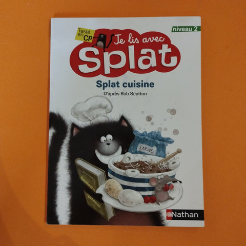 Collection proposant de retrouver les aventures de Splat le chat dans des récits que l'on a adaptés pour les apprentis lecteurs et distribués sous trois niveaux de difficulté. Les textes sont rédigés dans une police et un interlignage aérés, sans compter que les liaisons sont clairement indiquées et que les lettres muettes ont été grisées afin de faciliter la tâche des débutants. Les sons, les mots outils et les personnages en vedette sont présentés en début d'ouvrage, tandis que la plaquette se termine sur une "boîte à mots" récapitulant les grands thèmes de l'histoire. Dans cet épisode: Splat, le mignon chaton noir au poil tout fou, aspire à devenir un superhéros à l'image du protagoniste de son dessin animé favori. Or, en tentant de sauver Harry Souris d'un terrible malheur, il met le salon sens dessus dessous et son papa, exaspéré, l'envoie jouer dehors. Une randonnée à vélo lui fait découvrir l'organisation d'un grand concours de gâteaux dont le premier prix est une télévision! Après avoir échoué à inventer sa propre recette, le félin décide d'opter pour un gâteau plus conventionnel, mais de le décorer à l'effigie de son héros. Et, comble de bonheur, c'est ce dernier qui préside le concours! [SDM].