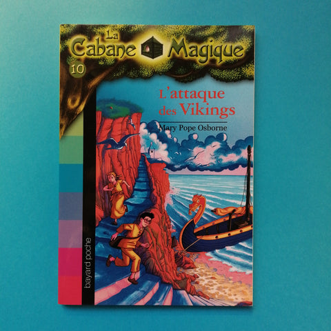Tom et Léa atterrissent en Irlande, au Moyen Age, et découvrent, au sommet d'une falaise, un monastère où vivent des moines. Tout paraît calme... Soudain, des bateaux à tête de dragons s'approchent de la côte : les Vikings attaquent ! Tom et Léa doivent sauver des livres, voués à disparaître, pour la bibliothèque de la fée Morgane. Aide-les ! En plus, tu apprendras plein de choses sur les Vikings.