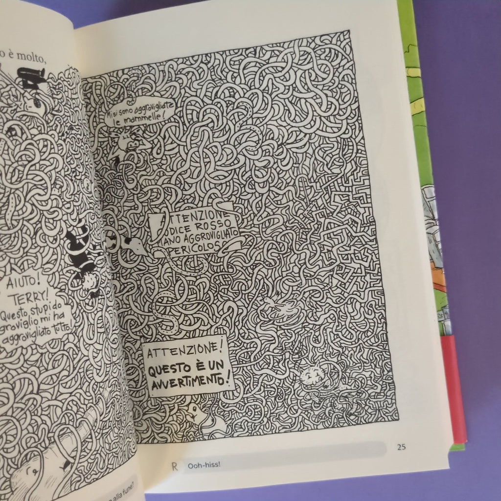 QUAL È IL COLMO PER UNA CASA SULL’ALBERO? Vieni a scoprirlo nei suoi 13 nuovi piani in più! Adesso qui puoi lanciare frigoriferi, salire (o scendere) la scala che non finisce mai, scatenare una battaglia di panini, depositare i tuoi rutti nella banca dei rutti, perderti nel livello aggrovigliato o semplicemente scalare il monte Everest (sì, ora c’è anche quello!) Ma c’è anche un piccolo problema: Andy ha un terribile mal di denti che gli impedisce di scrivere battute per il loro nuovo libro! Riusciranno lui e Terry a trovare una soluzione prima che sia troppo tardi? Forse la penna Scrivi-Battute 2000™ potrà salvarli… o forse creerà ancora più caos con le sue barzellette a raffica?