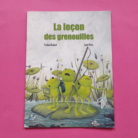 Dans cet album, les jeunes élèves de maîtresse grenouille apprennent à coasser et à plonger... et, en plongeant, elles découvrent horrifiées que les humains font des bêtises qui polluent leur environnement. En effet, ils jettent dans la mare de vieux objets dont ils ne veulent plus. Les jeunes grenouilles décident de réparer les dégâts et de donner une leçon aux humains.