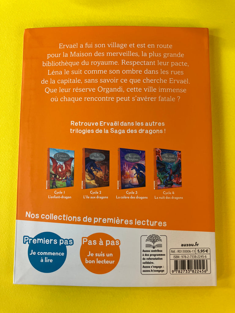 Ervaël a fui son village et est en route pour la maison des merveilles, la plus grande bibliothèque du royaume. Léna le suit comme son ombre dans les rues de la capitale. Que leur réserve Organdi, cette ville immense où ils ne connaissent personne et où chaque rencontre peut-être dangereuse ?