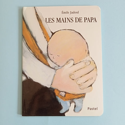 Comme elles sont rassurantes les grandes mains de Papa. Ce sont elles qui sentent bouger bébé dans le ventre de Maman. Qui peuvent bercer son petit corps tout entier et rattraper le petit enfant qu’il devient, en bas du toboggan. Un seul des grands doigts de Papa suffit pour le guider. Jusqu’au jour où le petit n’en a plus besoin… Sauf pour les câlins !