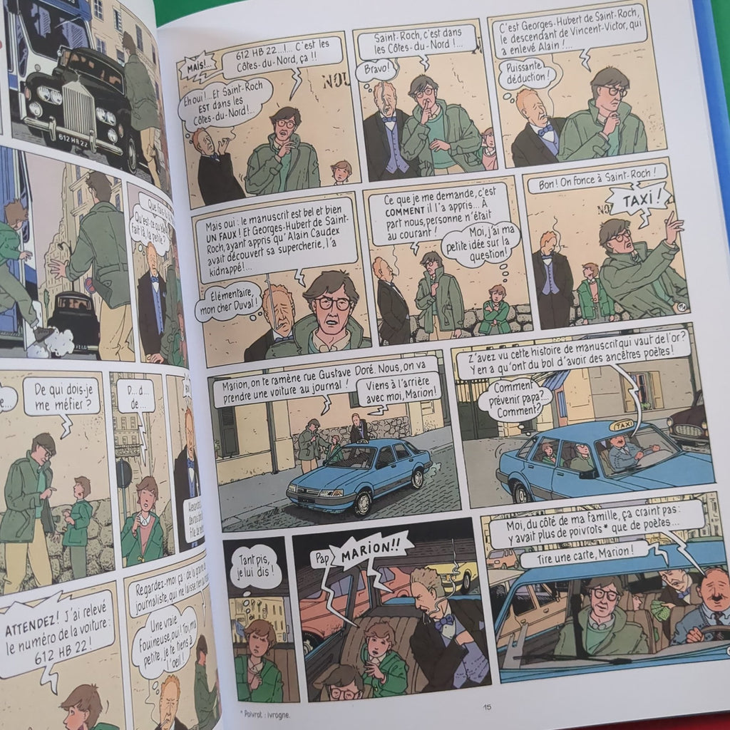 Le célèbre manuscrit de Vincent-Victor de Saint-Roch a été découvert. Mais Alain Caudex, historien et ami du père de Marion, pense que le manuscrit est un faux. Pour éviter que l'affaire ne s'ébruite, l'historien est kidnappé. Marion et son père partent à sa recherche. Marion Duval est une jeune fille pleine de ressources. Il faut dire que partout où elle passe, l'aventure la rejoint... Heureusement qu'elle peut compter sur ses amis, Fil et Gaël, pour mener l'enquête avec elle et se lancer dans le mystère !