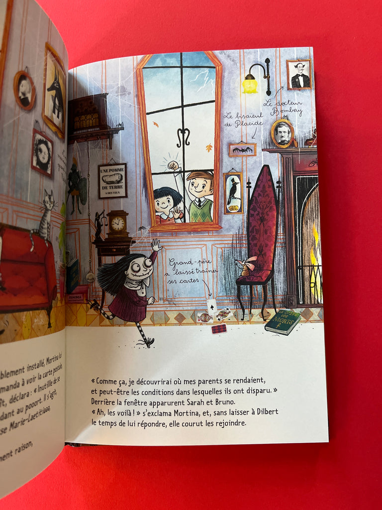 Halloween approche ! Alors que Mortina cherche un déguisement, elle trouve une carte postale envoyée par ses parents il y a trèèès longtemps. La dernière fois que la jeune zombie les a vus, ils embarquaient pour un voyage dont ils ne sont jamais revenus... Qu'a-t-il bien pu leur arriver ? Mortina décide de mener l'enquête, aidée de ses amis, de son fidèle lévrier Mouron et de son odieux cousin Dilbert. Mais d'abord, comment retrouver des parents zombies disparus depuis plus d'un siècle ? Une nouvelle aventure de la série à succès déjà publiée dans trente pays.