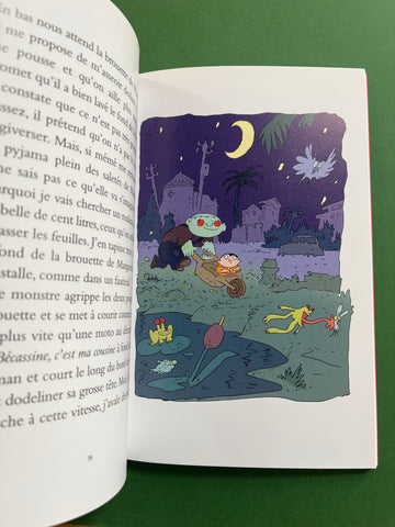 Tout a commencé par un film d’horreur. « Ce n’est pas de ton âge, Michel », m’avait pourtant prévenu Petit Vampire. Mais on est quand même allés voir Le Commando des morts vivants. Les zombies nazis étaient effrayants, mais comme c’était du cinéma, ça allait. Le problème, c’est que ces affreux sont revenus le soir, dans mon rêve. J’ai inventé une porte et ils sont partis, ouf ! Sauf que je ne savais pas où menait cette porte. Et puis Marguerite est arrivé pour me dire de venir vite, parce que d’horribles zombies avaient débarqué chez Petit Vampire...