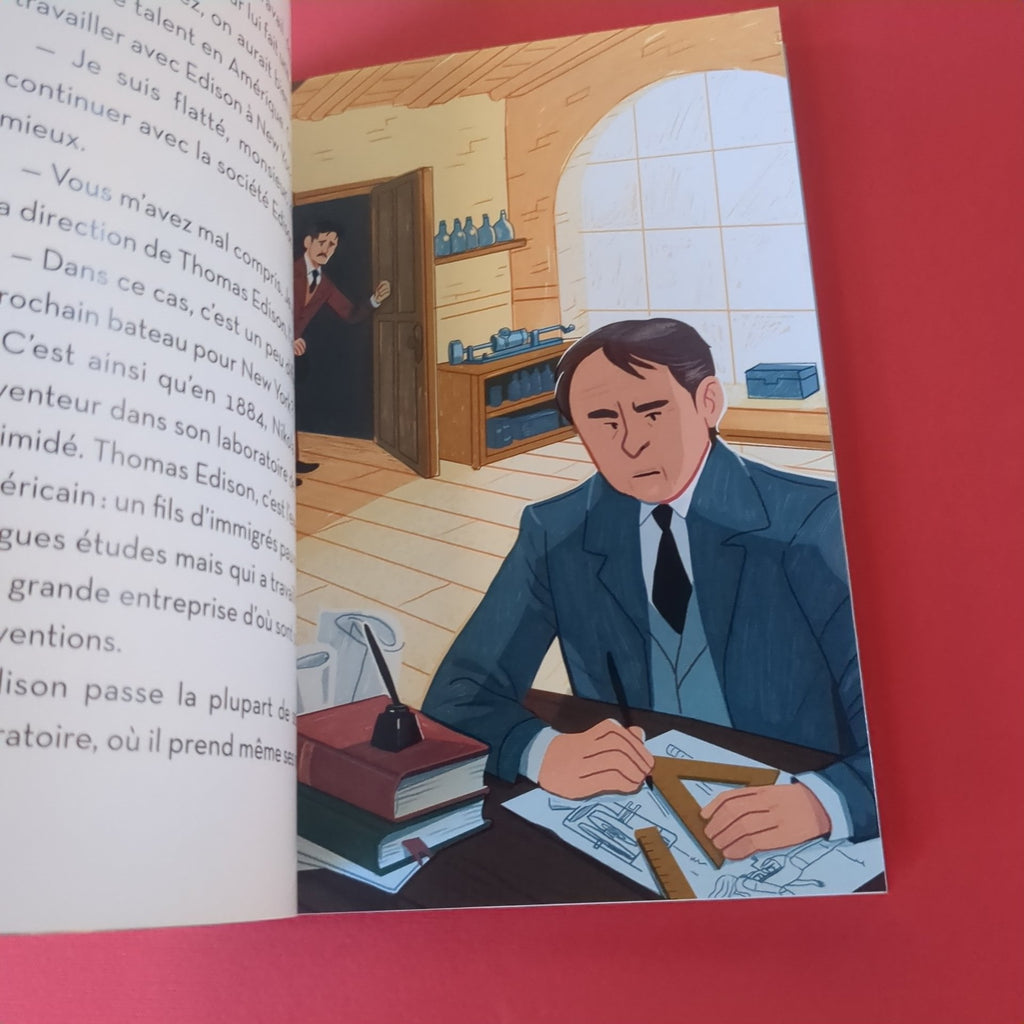 Dès son plus jeune âge, Nikola cultive un vif intérêt pour les sciences... N'en déplaise à son père qui souhaite le voir devenir prêtre. Fasciné par l'électricité, il passe une grande partie de sa vie à faire des recherches et des expériences autour d'elle. C'est ainsi qu'il met au point une bobine, puis un moteur, qui utilisent le courant alternatif. Ce courant électrique, considéré comme dangereux jusqu'alors, va révolutionner l'accès à l'électricité ! Mais Tesla ne s'arrête pas là: il dépose tout au long de sa vie près de 300 brevets sur ses inventions. Pourtant, ruiné, il finira son existence oublié de tous.